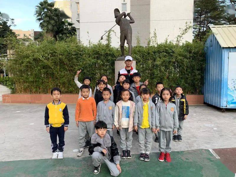 在華康小學的校園里,佇立著一尊揮桿者的雕像,它以馮珊珊為原型,得名“志存高遠”,希望這里的孩子們能夠向珊珊師姐學習,傳承體育精神,志存高遠,穩(wěn)步向前!