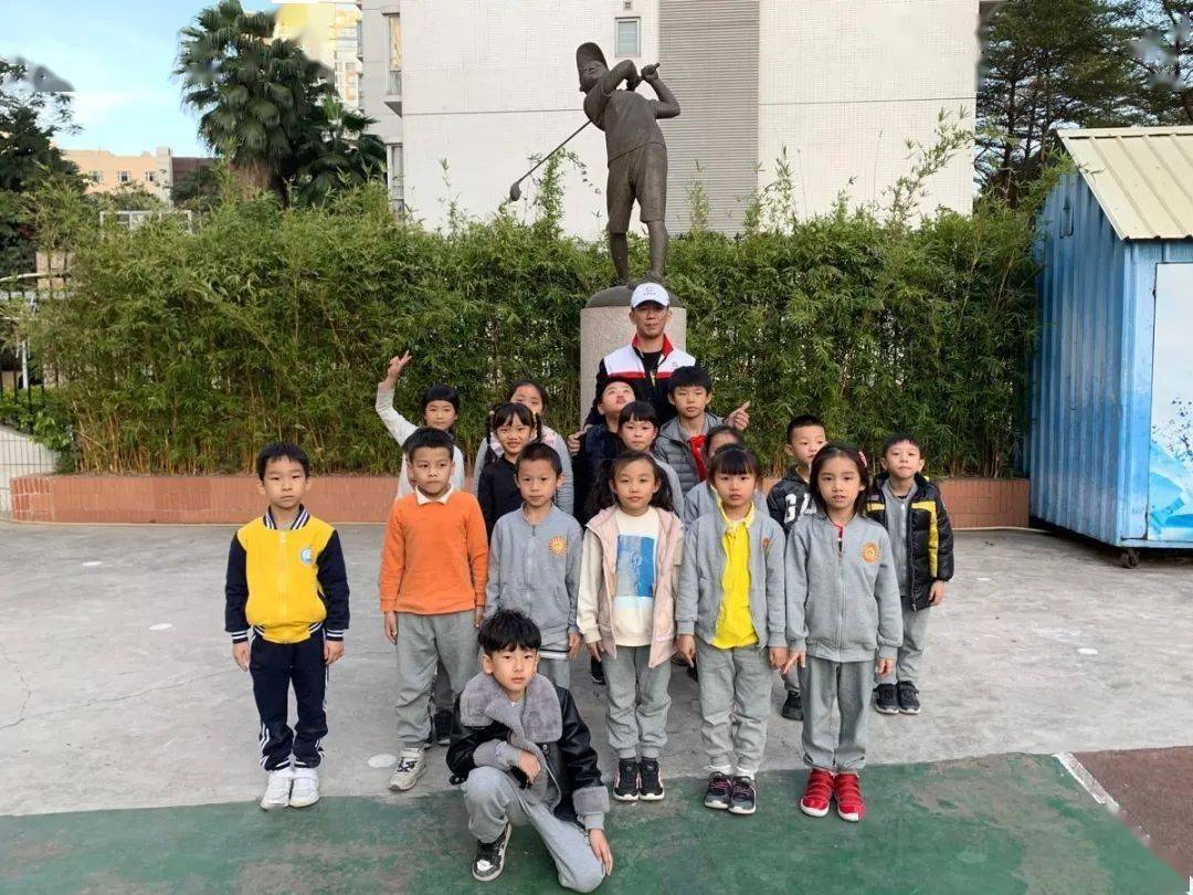 在華康小學的校園里,佇立著一尊揮桿者的雕像,它以馮珊珊為原型,得名“志存高遠”,希望這里的孩子們能夠向珊珊師姐學習,傳承體育精神,志存高遠,穩(wěn)步向前!
