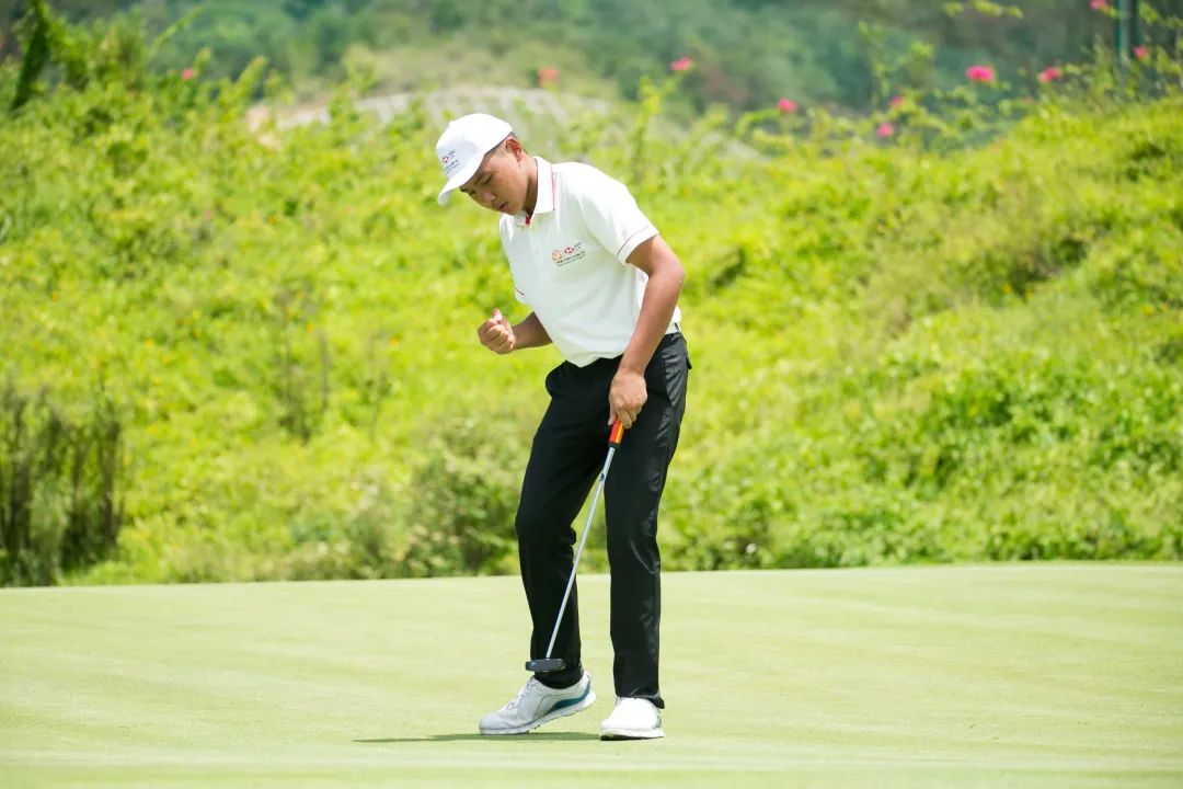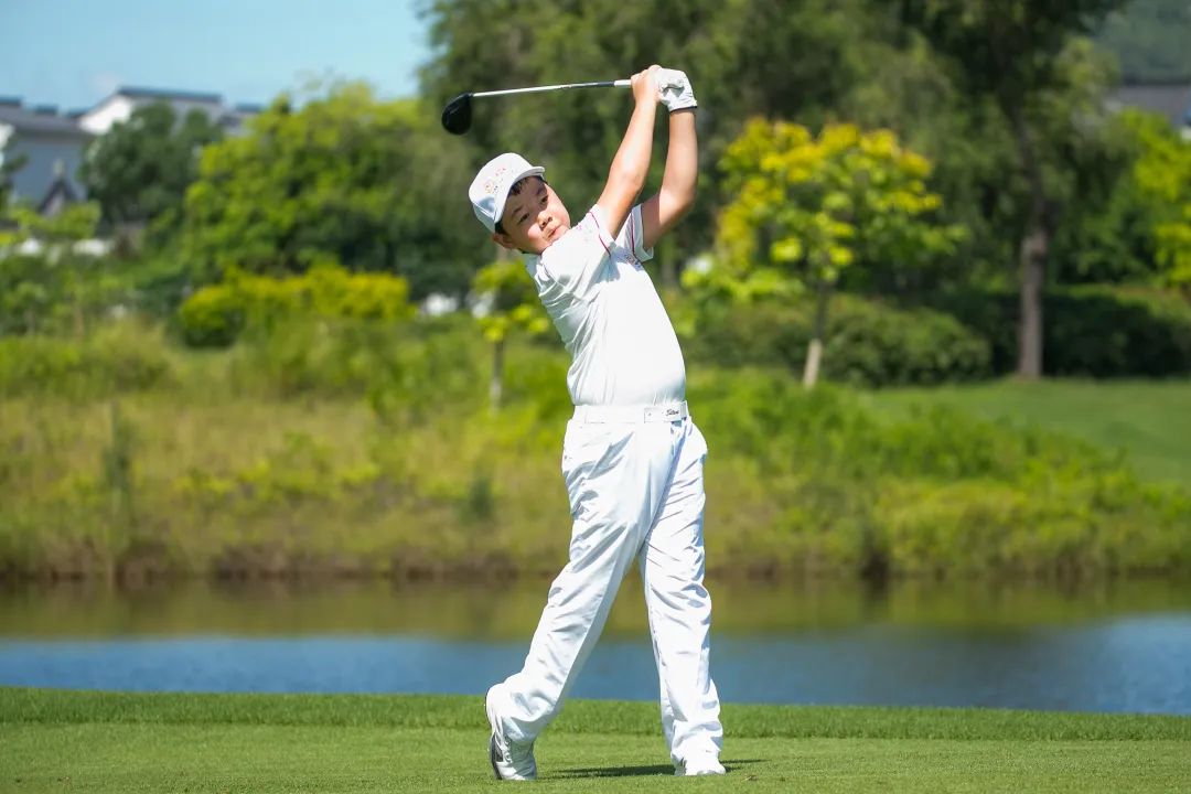 仝揚(yáng)在2019賽季以優(yōu)異表現(xiàn)一舉拿下匯豐青少年總決賽的冠軍,而今年他的目標(biāo)是再奪下兩個(gè)冠軍。今日賽場(chǎng)上的他不驕不躁,共計(jì)抓到5只小鳥(niǎo),吞下3個(gè)柏忌,領(lǐng)先同組種子選手周子勤3桿。而全天最漂亮的一只小鳥(niǎo)來(lái)自二號(hào)洞,三桿洞。仝揚(yáng)在果嶺邊,距離旗桿25英尺,面對(duì)一個(gè)很大的斜坡,他的小球很激進(jìn),撞旗進(jìn)洞。他說(shuō)在那里增強(qiáng)了自信,讓他可以放開(kāi)手去爭(zhēng)取佳績(jī)。